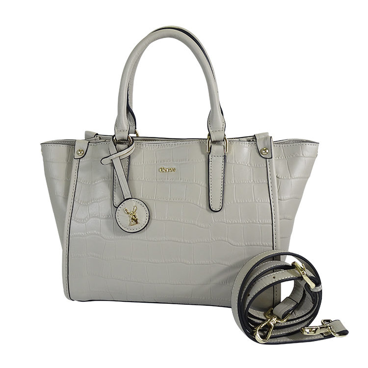 Description: Embossed Leather Zipped Tote With Front Zip Pocket, Interior Zip And Slip Pockets. Detachable Shoulder Strap.
